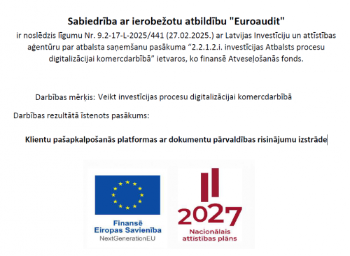 Euroaudit ir vairāk kā 20 gadu pieredze, strādājot ar dažāda mēroga un atšķirīgu nozaru klientiem gan Latvijā, gan ārvalstīs, tāpēc pārzinām arī specifiskas uzņēmējdarbības nianses. Šobrīd mūsu komandā ir 20 profesionāļi, kuri apkalpo vairāk nekā 300 klientus. Euroaudit speciālisti regulāri papildina zināšanas nozares kursos un semināros.